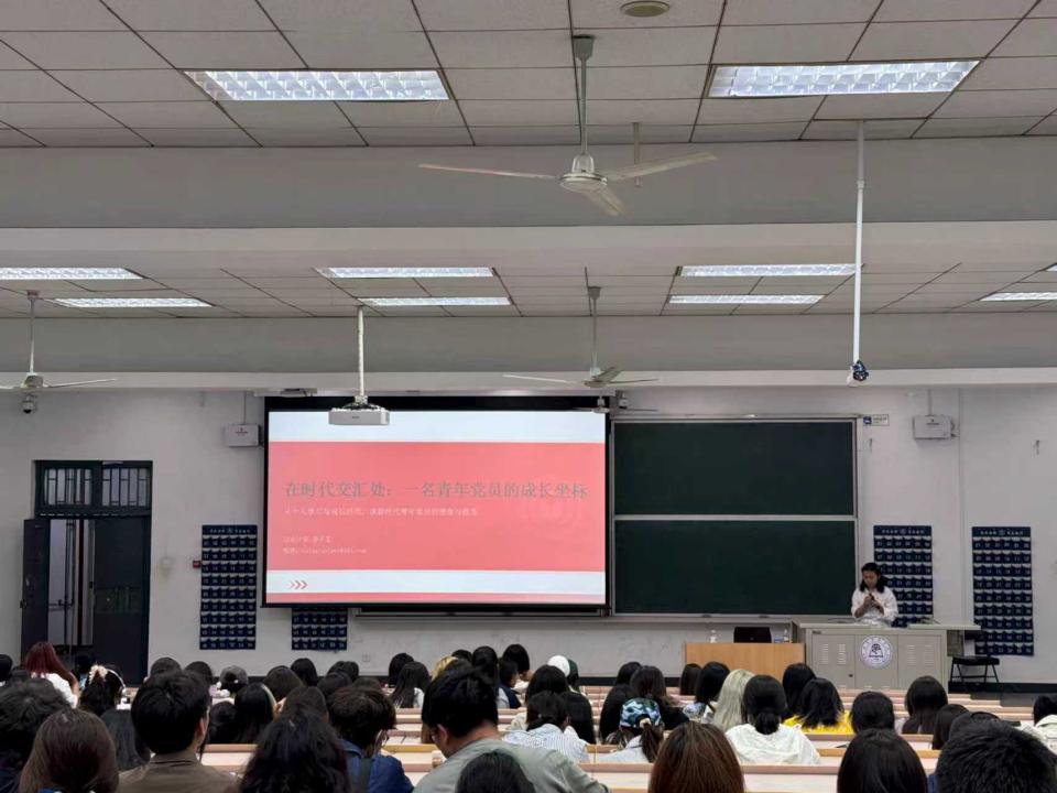 为引导新生坚定理想信念、树立远大志向,9月26日晚,我院举行“青春心向党,启航新征程——‘三观三感’教育暨优秀学子党课分享会”。会议由学院新生辅导员董琪琪主持,学院学工办副主任、党建辅导员曾琤,全体2025级本科新生参加活动。会上,两位优秀研究生党员代表分享了自己的成长故事与思想感悟。